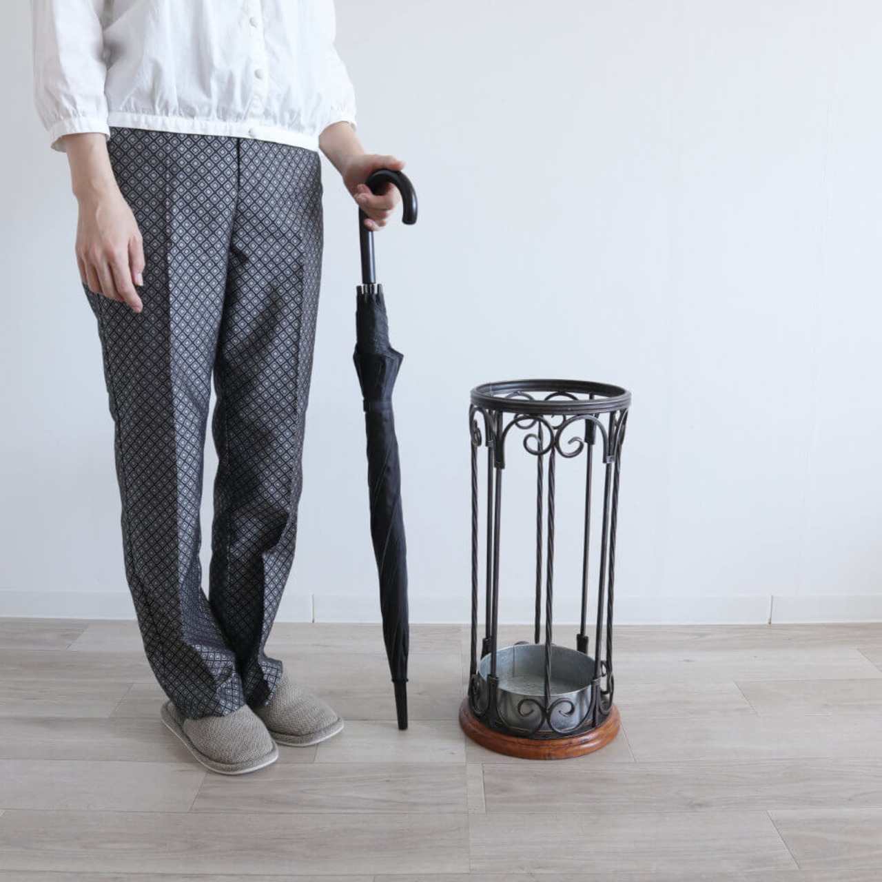 アンティーク調のとても高級感のあるアイアン製傘立てです。 作りもしっかりしておりとても安定感があります♪ 雨皿は取り外し可能、傘から垂れる水も捨てやすいのでとても便利♪傘も10本程度入りますので大家族、またはお店でも使用可! お家に来られたお客様、ご友人様の目を引くこと間違いなし!玄関にお一ついかがですか?