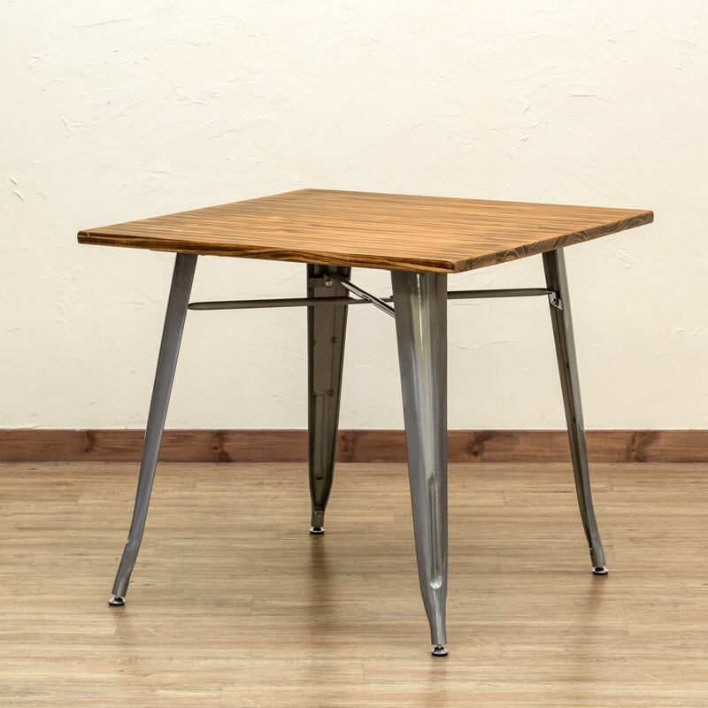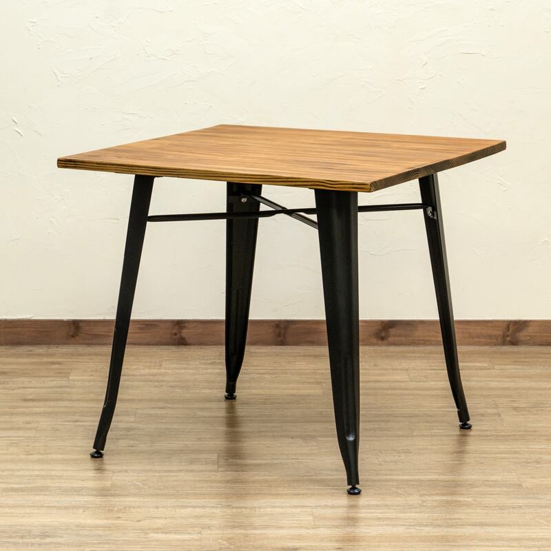 天然木の天板とスチール製の脚部の組み合わせは、カフェのような雰囲気のある正方形のテーブルです