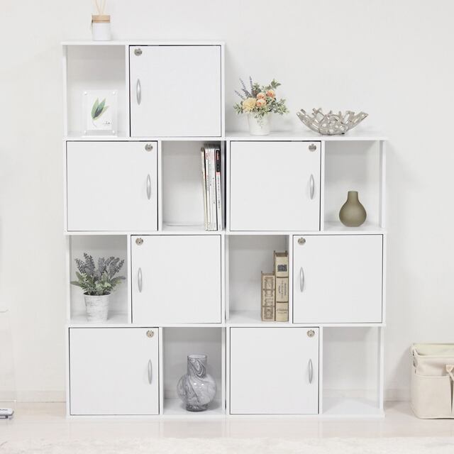プライバシーを守る安心の鍵付。扉収納とオープン収納の組み合わせがスタイリッシュなラックです。