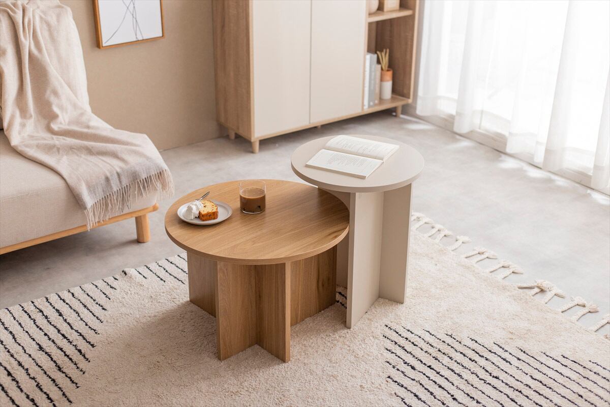 丸い天板と個性的な脚部がこなれた空間を演出する『Luna(ルナ)』ラウンドサイドテーブル