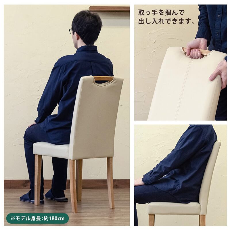 背もたれの飾り木は、取っ手にもなり持ち運ぶ際に便利です