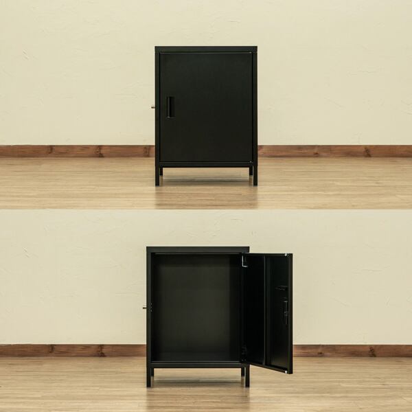 盗難防止ワイヤーと鍵付き扉で収納物をしっかり守ります