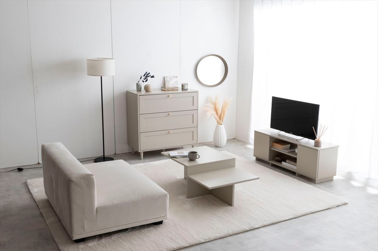 品のある框(かまち)デザインと柔らかなニュアンスカラーが印象的な『Calan(カラン)』シリーズのチェスト