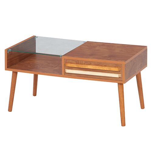 材質:[天板]5mm強化ガラス、合成樹脂化粧パーティクルボード [引出前板]一部天然木、合成樹脂化粧パーティクルボード [脚]天然木