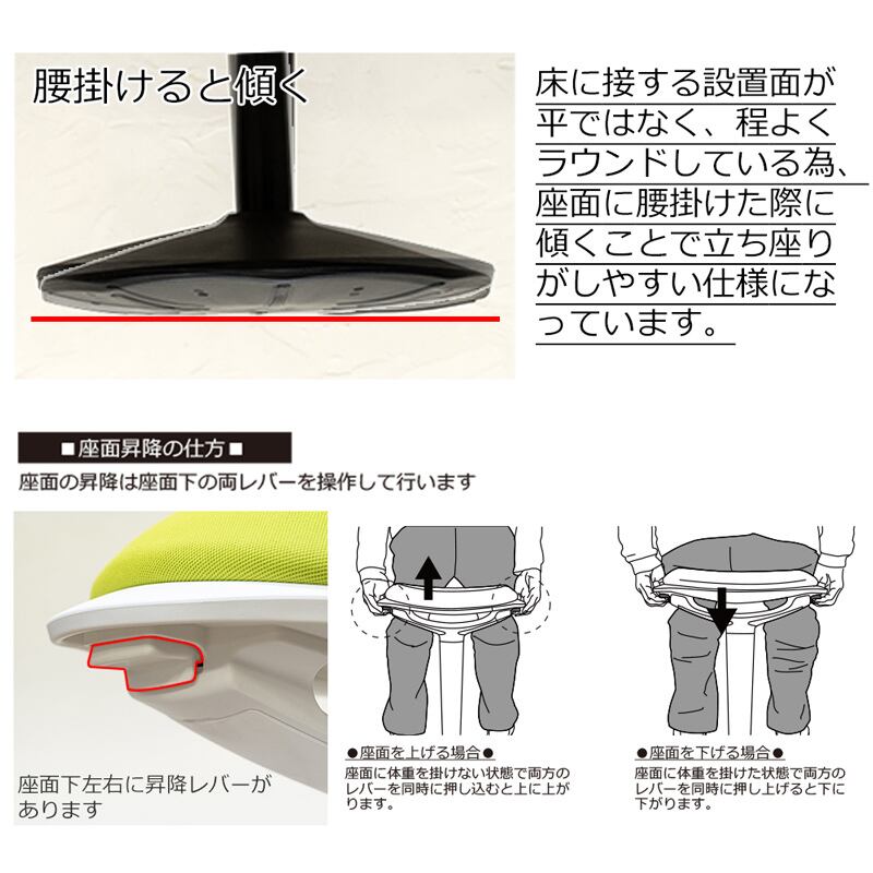 また、底面が傾く仕様の為、足が付かない状態でご使用の場合は、転倒しないように十分にご注意の上、昇降を行ってください