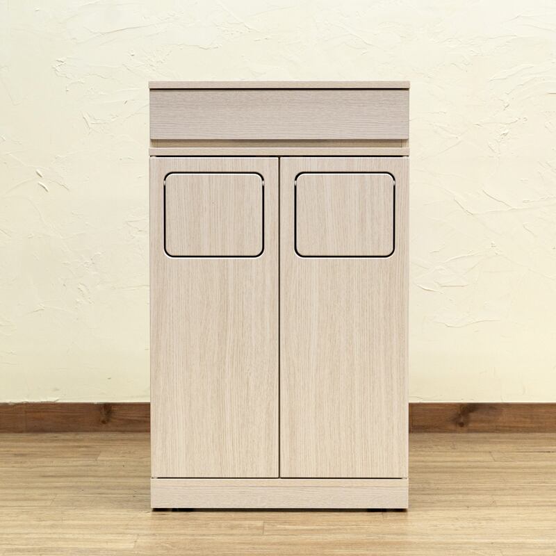 パッと見ゴミ箱らしくないスマートなデザインの木目柄ダストボックスです