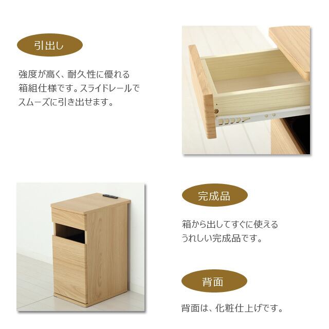 ◆引出しは、強度が高く、耐久性に優れる箱組仕様です。スライドレールでスムーズに引き出せます。