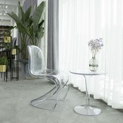 プラスチックの一体成型という画期的なデザインは、お部屋のアクセントとしてはもちろん、座り心地がよく、スタッキングが可能な実用的なチェアでもあります